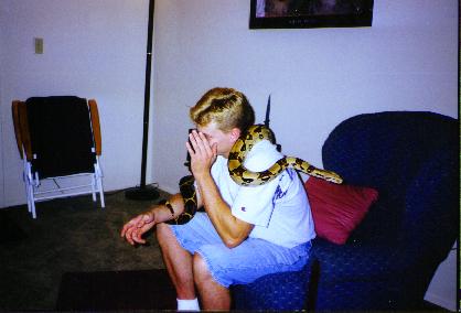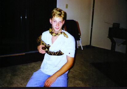 Jacob never gets enough of crawling all over me. These pix were taken two years ago. He is almost two feet longer than you see him here |